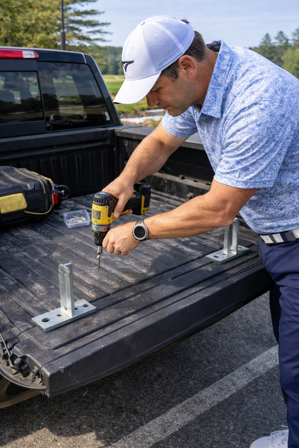 The Tailgate Caddy was created by a truck owner and golfer who was tired of watching clubs roll around the bed of a pickup. After months of design, testing, and refinement, the solution became a simple, secure system built specifically for trucks.